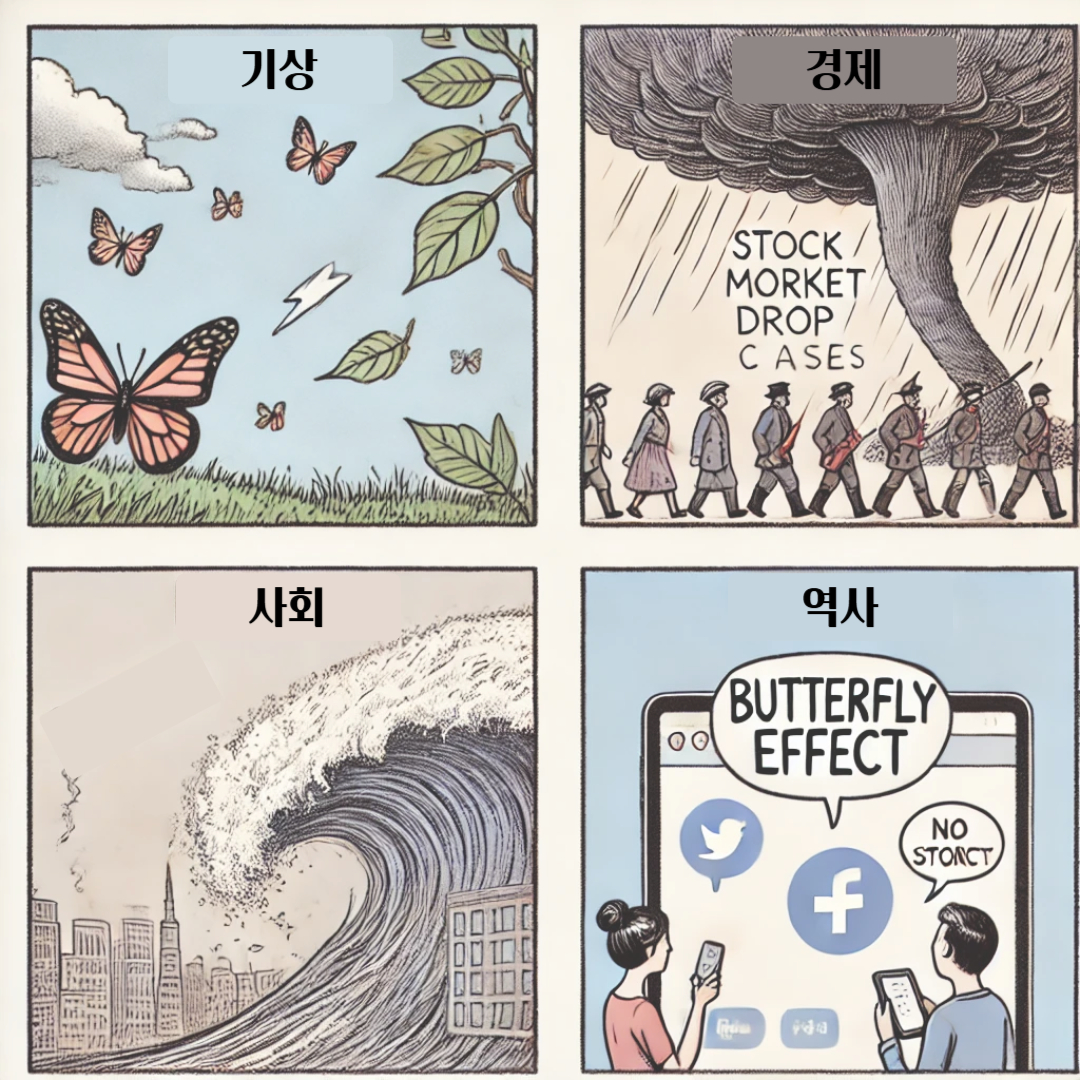 오늘날 나비효과는 단순히 기상 변화에 국한되지 않고, 경제, 정치, 환경, 기술 발전 등 다양한 분야에서 적용되고 있습니다. 특히, 글로벌 시대에는 작은 변화가 전 세계적으로 큰 영향을 미치는 사례가 점점 늘어나고 있습니다.