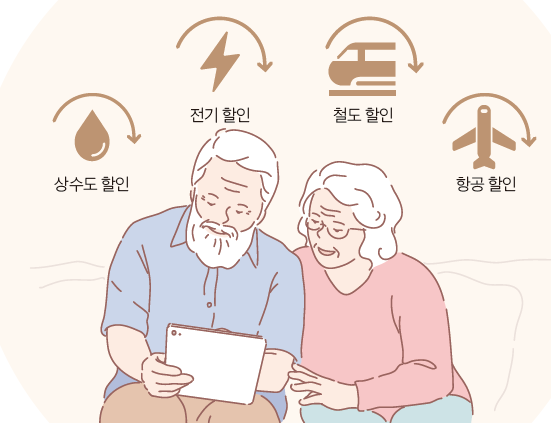 만 65세가 되면 정부에서 지원받을 수 있는 복지 혜택이 늘어난다. 교통비뿐만 아니라 이동통신 요금 할인 및 노인복지시설의 도시가스, 전기, 상수도 요금 감면까지 어르신들을 위한 다양한 혜택이 있다. 알아두면 쓸데 있는 어르신을 위한 요금 감면 혜택들을 모아 소개한다. . 저렴하게 이용하고, 알뜰하게 요금 할인 챙기세요!