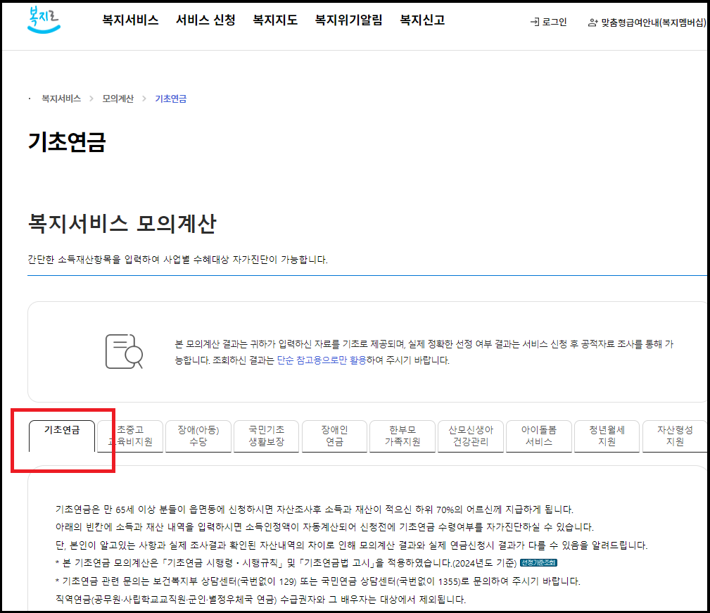 기초연금 수령액을 간단한 소득재산항목을 입력하여 예상 수령액 계산이 가능합니다.