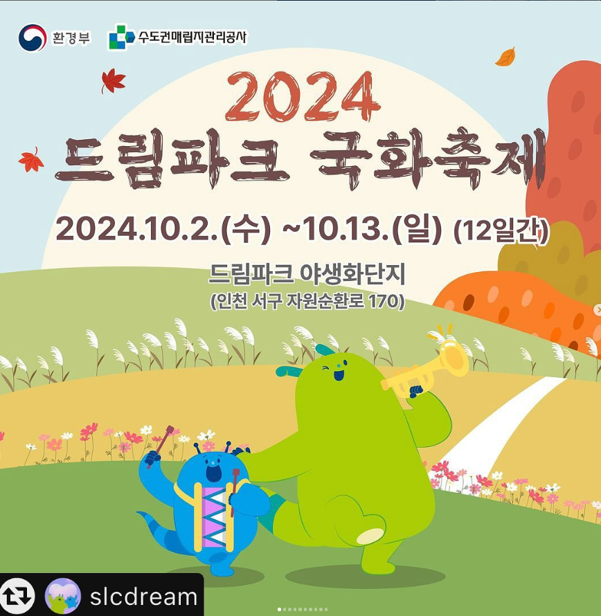 수도권 최대 규모의 드림파크 국화축제가 2024년 가을, 6년 만에 다시 찾아옵니다. 코스모스, 국화 등 가을꽃을 테마로 대군락 꽃밭과 다양한 체험 프로그램, 공연을 즐길 수 있는 특별한 시간이 여러분을 기다립니다.