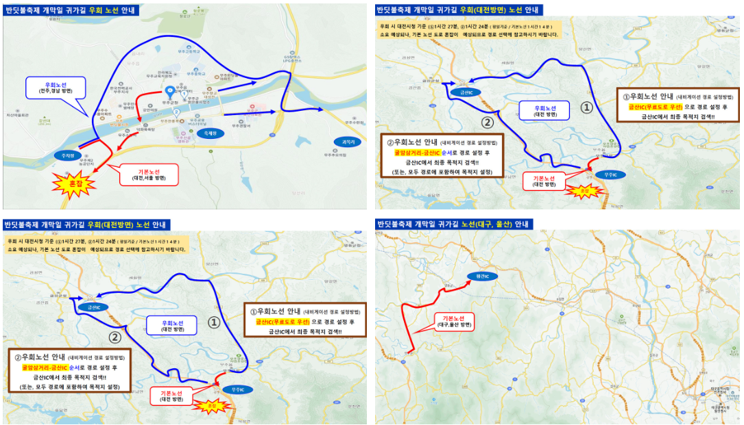 찾아가는 길과 주차장 및 귀가 혼잡을 피한 우회로 길