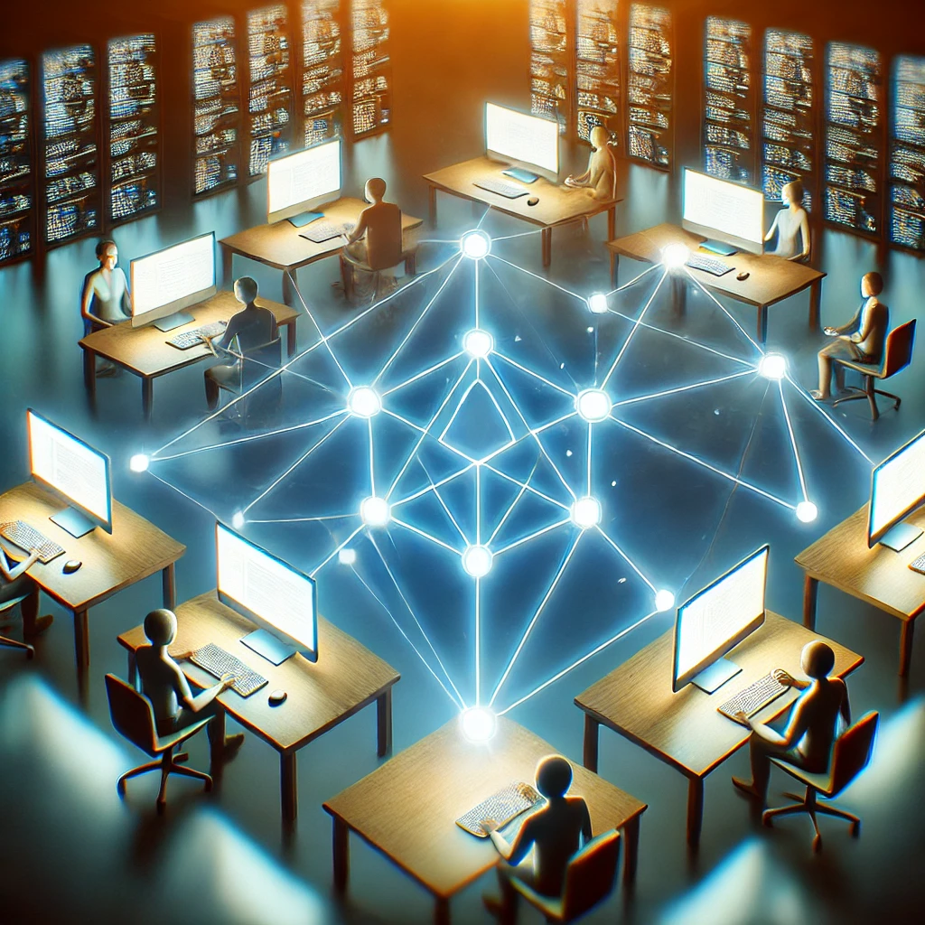 유사 표현: 분산 원장 기술(DLT), 탈중앙화 데이터 저장, P2P 거래 구조