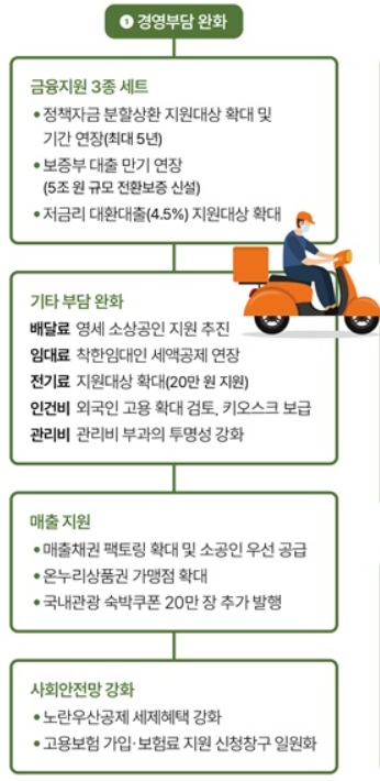 소상공인의 경영 부담을 덜기 위해 배달료, 임대료, 전기료, 인건비, 관리비 등 5대 고정비용 지원을 강화합니다.