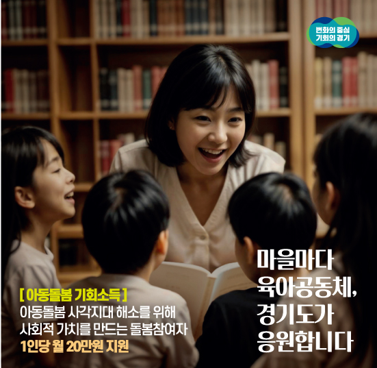 경기도 아동돌봄 기회소득 지원사업은 지역 사회의 아동돌봄 문제를 해결하고자 마련된 정책입니다. 많은 참여로 혜택을 받으시길 바랍니다.