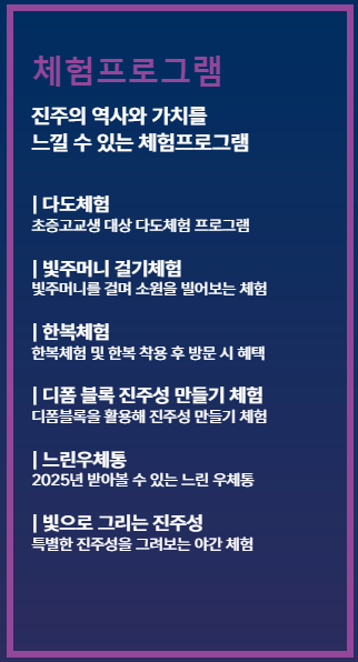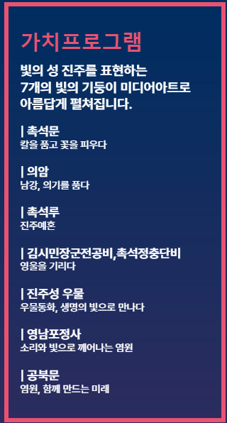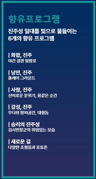 - 향유프로그램: 진주성 일대를 빛으로 물들이는 6개의 향유 프로그램