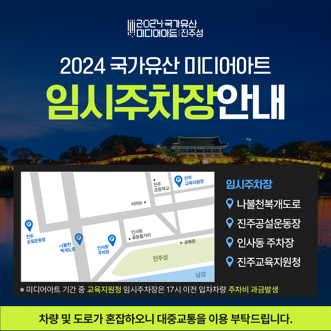 이번 국가유산 미디어아트 진주성은 진주성의 역사와 문화를 새로운 시각으로 만날 수 있는 특별한 기회입니다. 진주성의 아름다움을 미디어 아트를 통해 느끼고 싶다면, 꼭 방문해보세요!