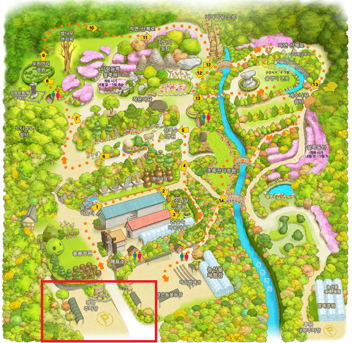 율봄식물원 정문 매표소는 경기도 광주시 퇴촌면 도마리 102-3번지에 위치해 있으며, 방문객은 이곳에서 입장권을 구매한 후 식물원 내 다양한 정원과 체험 프로그램을 즐길 수 있습니다. 아래 길찾기를 클릭하시어 쉽게 찾아 가세요.