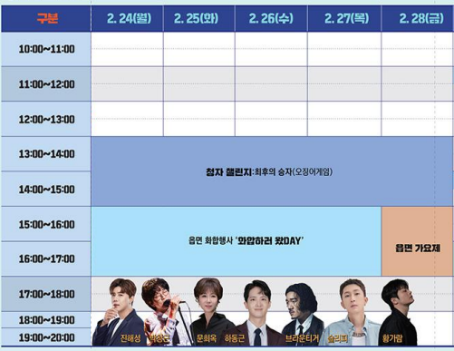 🎤 개막축하쇼: 유명 가수 초청 공연 및 다채로운 무대
