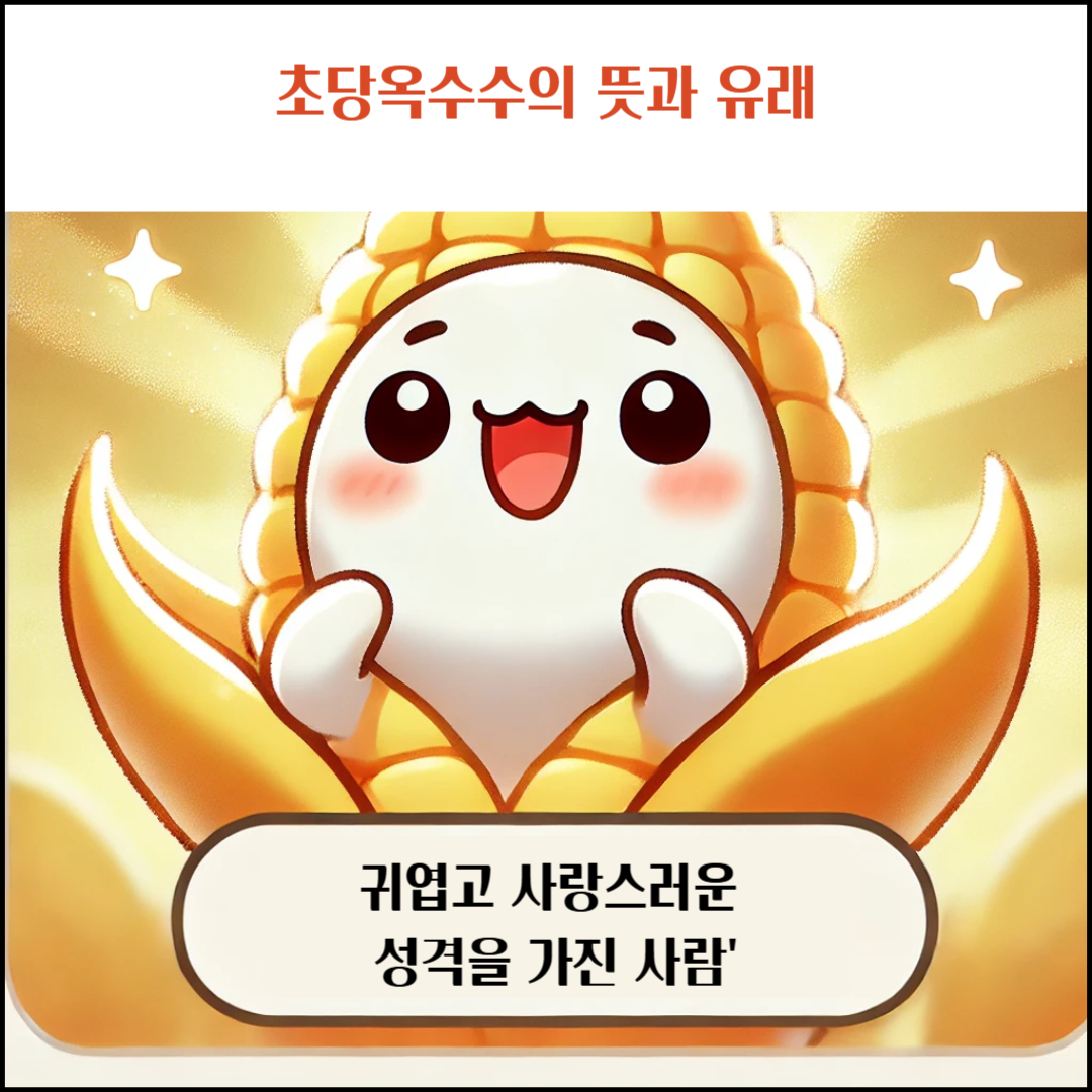 '초당옥수수'는 원래 일반적인 옥수수보다 당도가 높은 품종의 이름이지만, 최근 MZ세대 사이에서 '순수하고 달콤한 사람' 또는 '귀엽고 사랑스러운 성격을 가진 사람'을 지칭하는 신조어로 사용되고 있습니다.