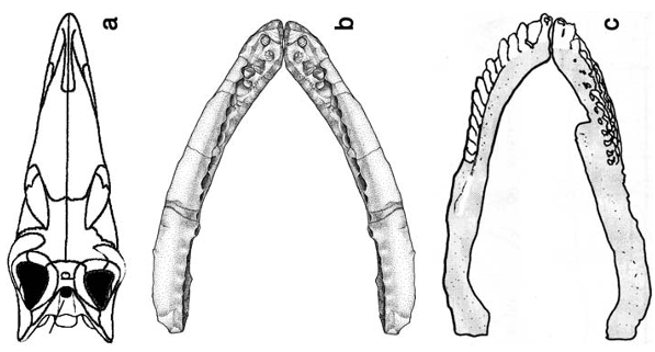 (a) 플라테오사우루스(Plateosaurus)의 두개골 (AMNH 6810; Galton, 1985b 참조),