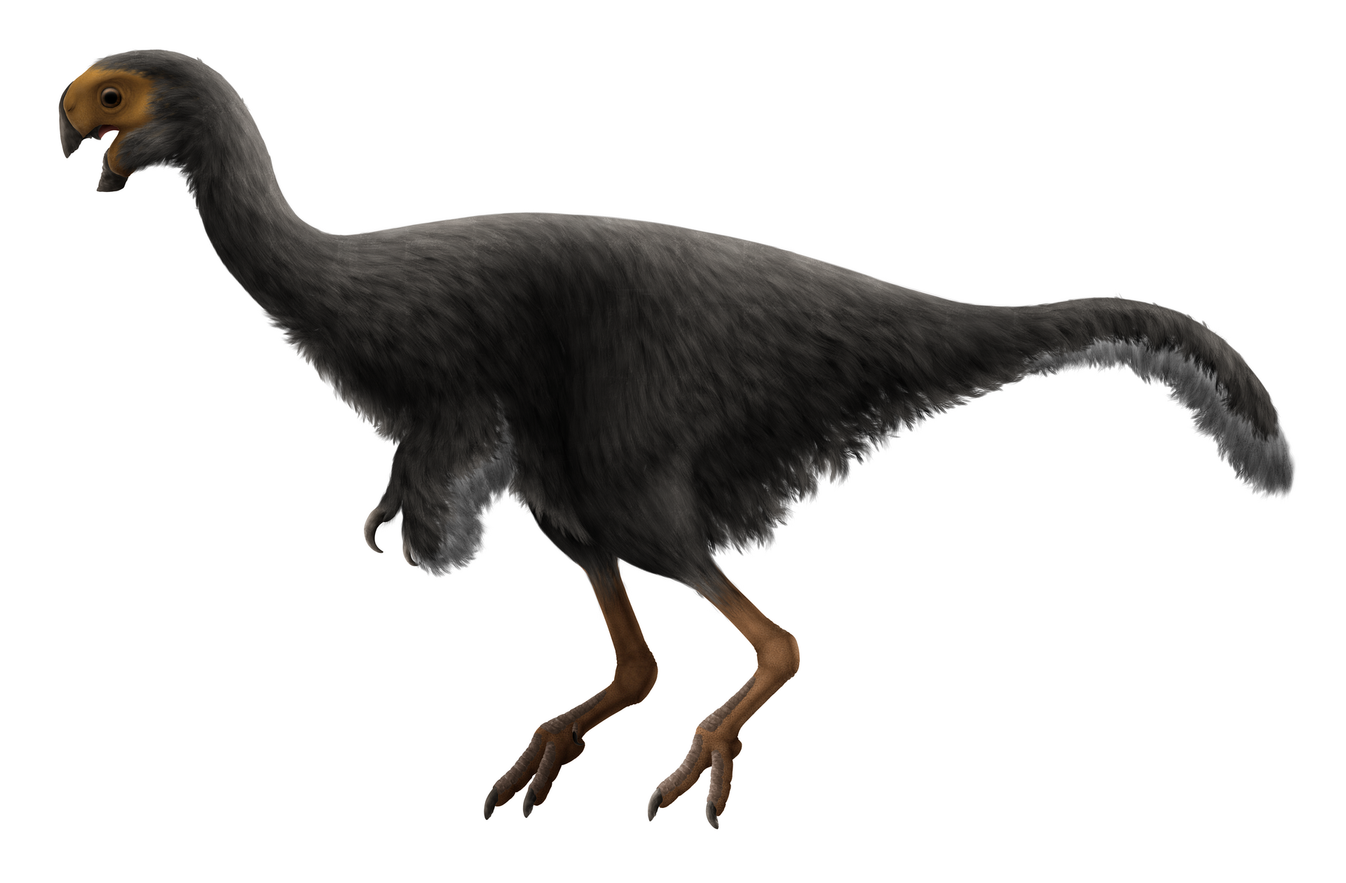 전체 길이는 약 1.5~2미터, 체중은 20~25킬로그램 내외로 추정되며, 비교적 작고 가벼운 체형으로 빠른 이동과 정밀한 부리 사용이 가능했을 것으로 보입니다. 깃털을 가지고 있었을 가능성이 매우 높으며, 이는 조류와의 진화적 연관성을 더욱 강화시킵니다.