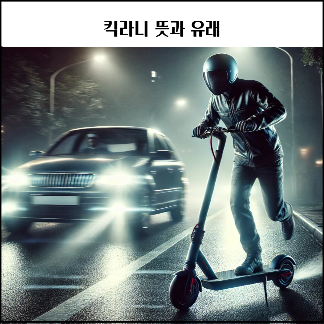 "킥라니"는 전동킥보드 이용자가 증가하면서 등장한 신조어입니다. 전동킥보드는 도로와 인도를 가리지 않고 주행할 수 있어 보행자와 자동차 운전자 모두에게 위험을 초래하는 경우가 많습니다. 특히 야간이나 교차로에서 예고 없이 빠르게 나타나면서 사고를 유발하는 모습이 마치 도로 위에서 갑자기 튀어나오는 고라니와 비슷하다는 점에서 "킥라니"라는 단어가 탄생했습니다.