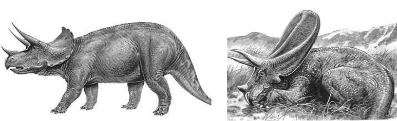약 6,800만~6,600만 년 전 – 북미 대륙에서 트리케라톱스가 서식. 백악기 후기를 대표하는 각룡류 공룡.