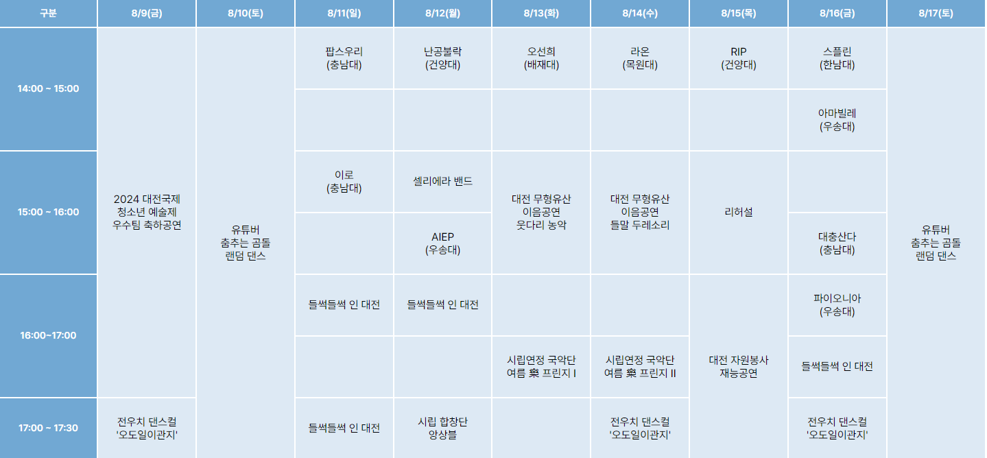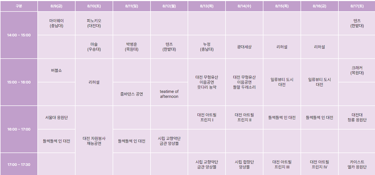 - 주최: 대전광역시, 대전광역시·대전문화재단·대전관광공사·대전사랑시민협의회