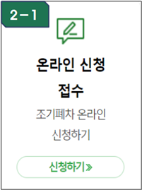 (2-1) 첫번째 방법에 따르면 온라인 신청 접수를 하거나 우편접수를 하는 방법이 있습니다. 온라인 신청 하기로 신청 절차를 시작할 수 있습니다.