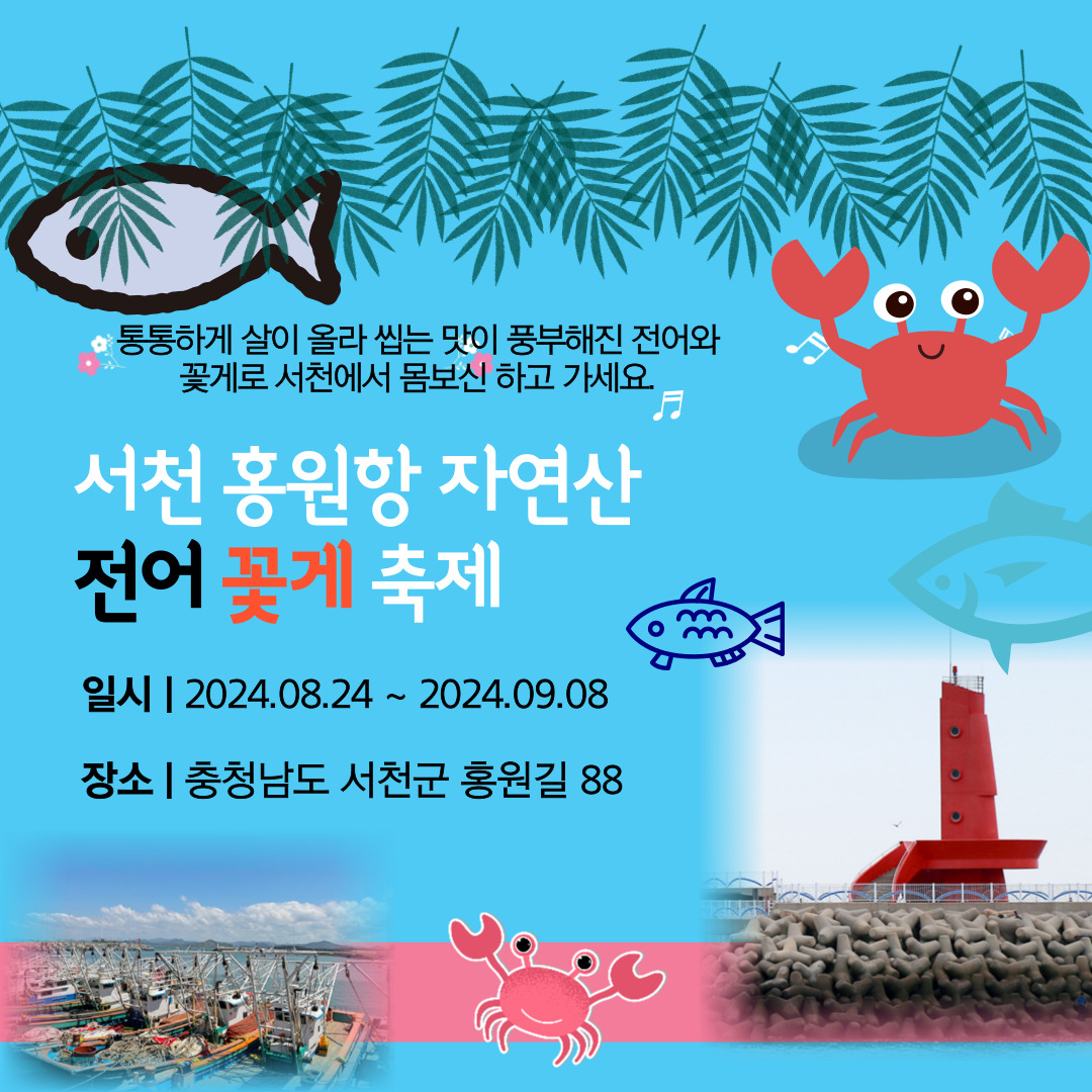2024 서천 홍원항 자연산 전어 꽃게 축제에서 자연산 전어와 꽃게를 맛보며 다양한 체험과 즐길거리를 경험하세요!
