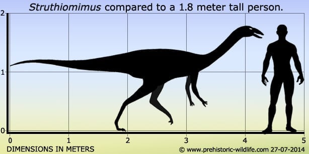 Struthiomimus는 캐나다 앨버타주, 미국 몬태나주와 와이오밍주 등지에서 다수의 화석이 발견되어 오르니토미무스과 공룡 중 가장 잘 알려진 속 중 하나로 꼽힙니다. 일부 연구에서는 깃털을 가졌을 가능성도 제기되고 있습니다.